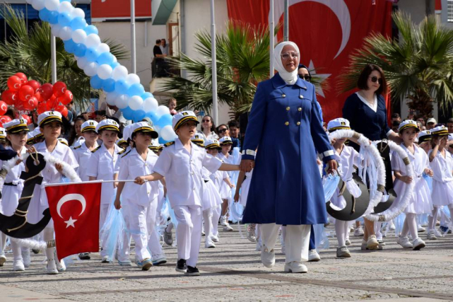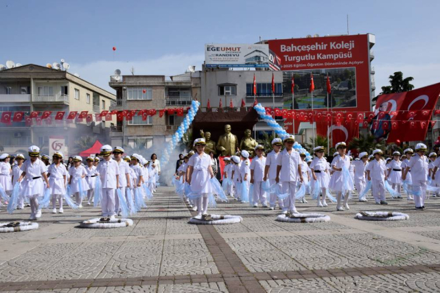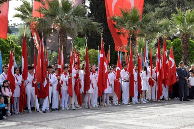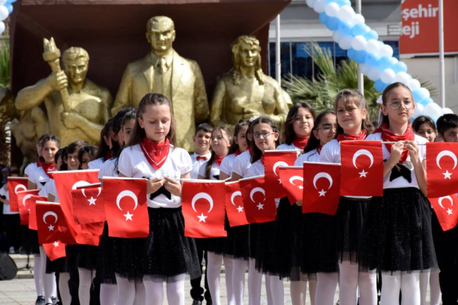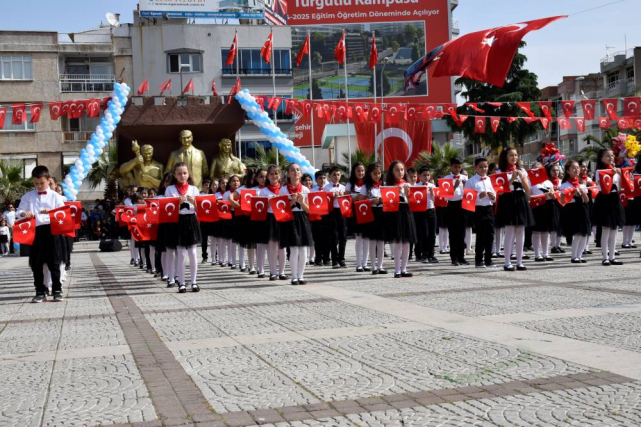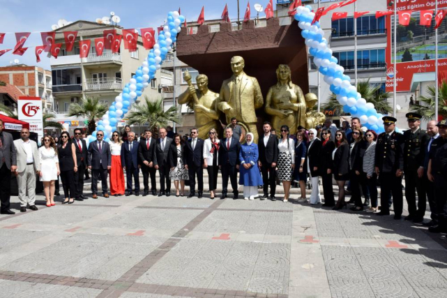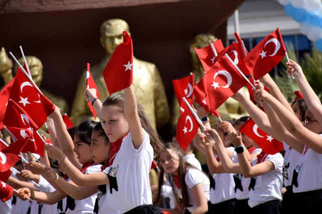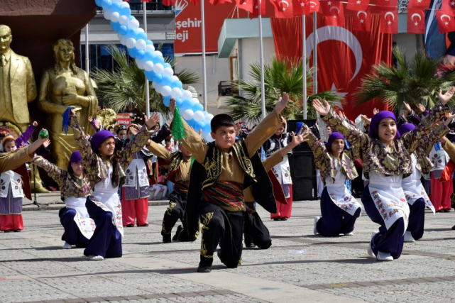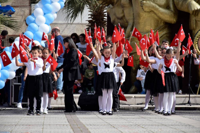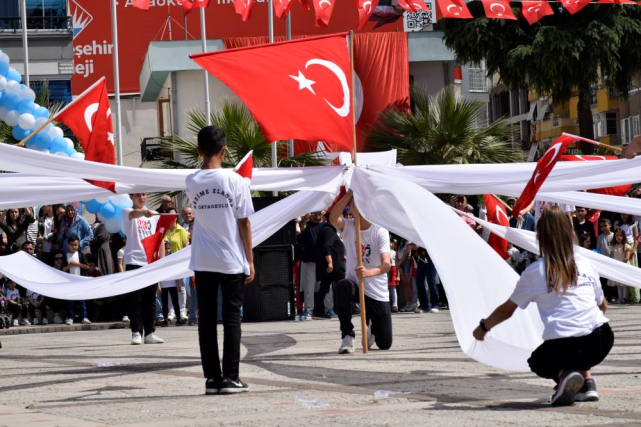 İlçe Milli Eğitim Müdürü Mehmet Ölmez burada yaptığı konuşmada: “Milli egemenliğimizin sembolü, kurtuluş mücadelemizin ve demokrasi tarihimizin en önemli kurumlarından olan Türkiye Büyük Millet Meclisi’nin açılışının 104. yılında gururla kutladığımız Ulusal Egemenlik ve Çocuk Bayramı, istikbalimizin yegâne teminatı olan çocuklarımıza kutlu olsun. Sevgiye, barışa, dostluğa, kardeşliğe, çağdaşlığa, bilime, teknolojiye açılan aydınlık ve büyük bir kapı olan 23 Nisan Ulusal Egemenlik ve Çocuk Bayramı, Gazi Mustafa Kemal Atatürk’ün geleceğin teminatı olan çocuklarımıza sevgi ve güveninin en güzel ifadesidir. Bizler, bu sevgi ve güven sayesinde dünyanın ilk ve yegâne çocuk bayramı olarak tarihe geçen bu önemli günde, tüm dünya çocuklarıyla ulusal egemenlik sevincimizi paylaşıyoruz. Sevgili Çocuklar; Sizler, milletimizin umut çiçekleri, aydınlık yarınlarımızı kucaklayan güçlü kollarısınız. Bu bakımdan sizlerin sağlıklı, eğitimli, mutlu ve özgür bireyler olarak hayata devam etmeniz en büyük arzumuzdur. Bu duygu ve düşüncelerle başta Cumhuriyetimizin ve Türkiye Büyük Millet Meclisimizin Kurucusu Gazi Mustafa Kemal Atatürk’ü, silah arkadaşlarını, aziz şehit ve gazilerimizi, minnet ve şükranla anıyor; tüm hemşerilerimize, ülkemizin ve dünyanın bütün çocuklarına huzur, sağlık ve mutluluk getirmesini diliyorum.” dedi.
