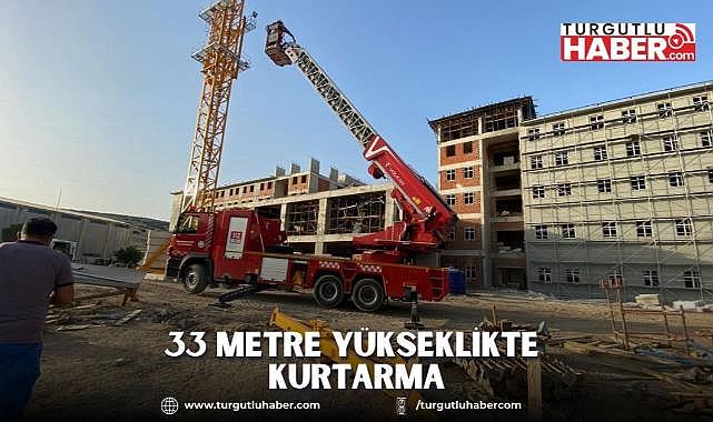 Manisa Celal Bayar Üniversitesi Kula Meslek Yüksekokulu yurt inşaatında çalışan vinç operatörü Yusuf Seven, 33 metre yükseklikteki kabinde mahsur kaldı.