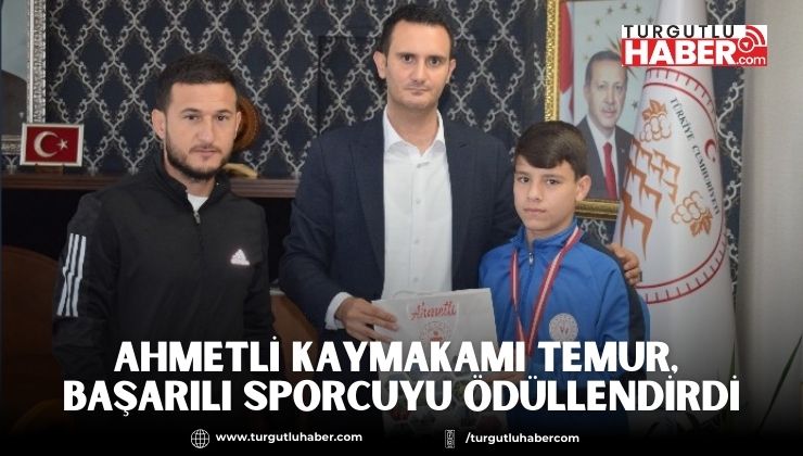 Manisa'nın Ahmetli ilçesi Kaymakamı Mehmet Akif Temur, Kula Yağlı Pehlivan Güreşleri'nde 2'nci olan başarılı sporcuyu ağırladı.27'nci Kula Yağlı Pehlivan Güreşleri'nde 2'nci olan Mithat Başeğmez, Ahmetli Kaymakamı Mehmet Akif Temur'u makamında ziyaret etti.Minikler kategorisinde 2'ncilik elde eden Ahmetli Gençlik ve Spor ilçe Müdürlüğü sporcusu Mithat Başeğmez'i tebrik eden Kaymakam Temur, başarılar dileyip, genç sporcuya hediye verdi.