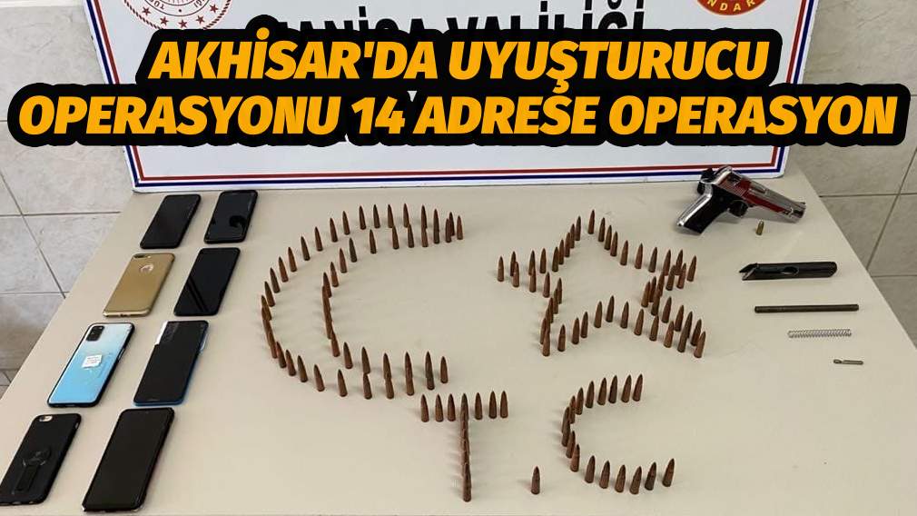 Manisa'nın Akhisar ilçesinde jandarma tarafından yapılan operasyonda 7 kişiye ait 14 adrese eş zamanlı operasyon düzenlendi.