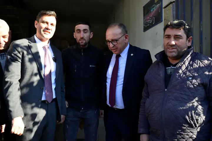 CHP Manisa Büyükşehir Belediye Başkan Adayı Ferdi Zeyrek ve Belediye Başkanı Çetin Akın daha sonra birlikte Erbiller Sanayi Sitesi esnafını ziyaret etti.
