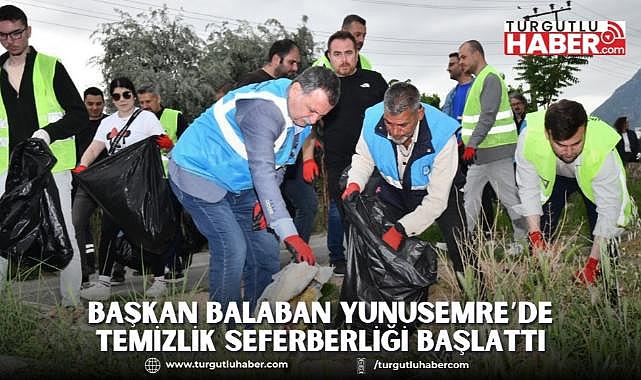 Yunusemre Belediye Başkanı Semih Balaban, ‘Temiz Yunusemre’ sloganıyla ilçede temizlik seferberliği başlattı. ‘Temiz Yunusemre, Temiz Çevre’ adı altında başlatılan kampanya çerçevesinde Başkan Balaban çevrecilerle birlikte, Barbaros ve Horozköy’de 3,5 saat boyunca çöp topladı.