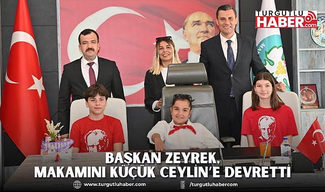 Yurt genelinde 23 Nisan Ulusal Egemenlik ve Çocuk Bayramı coşkusu yaşanırken, makam koltuklarına çocuklar geçti. Manisa Büyükşehir Belediye Başkanı Mimar Ferdi Zeyrek de, koltuğunu Çağatay Uluçay Ortaokulu öğrencisi Ceylin Gürcan’a devretti. Annesi Zuhal Gürcan, Okul Müdürü Mehmet Göksu, sınıf arkadaşları Eflin Tali ve Kayra Efe Yamaç ile birlikte Başkan Zeyrek ile bir araya gelen küçük Başkan Ceylin Gürcan, makam koltuğunu devraldı. İlk mesajında 23 Nisan Ulusal Egemenlik ve Çocuk Bayramı’nı kutlayan Ceylin Gürcan, egemenliğin kayıtsız ve şartsız milletin olduğu vurgusu yaptı. Gürcan’ın arkadaşları Eflin Ece ve Kayra da, 23 Nisan Ulusal Egemenlik ve Çocuk Bayramı’nı kutladı.