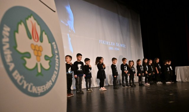 Manisa Büyükşehir Belediyesi Şehir Tiyatrosu Uğur Mumcu Sahnesi’nde düzenlenen etkinlikte, minik öğrenciler Ata’ya olan sevgilerini şiirler, şarkılar ve temsili gösterilerle dile getirdi.