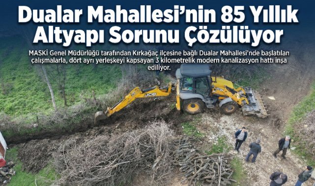 MASKİ Genel Müdürlüğü tarafından Kırkağaç ilçesine bağlı Dualar Mahallesi’nde başlatılan çalışmalarla, dört ayrı yerleşkeyi kapsayan 3 kilometrelik modern kanalizasyon hattı inşa ediliyor.