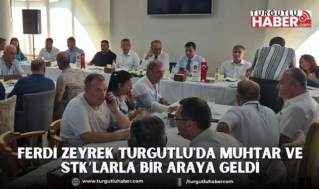 Turgutlu Belediye Başkanı Çetin Akın'ı makamında ziyaret eden Ferdi Zeyrek, daha sonra ilçedeki mahalle muhtarları ve sivil toplum kuruluş temsilcileri ile Turgutlu Belediyesi sosyal tesislerinde toplantı yaptı.