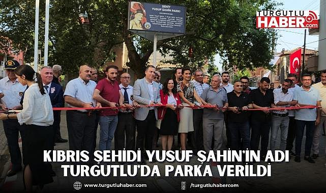 Kıbrıs Barış Harekatında şehit olan Manisalı Yusuf Şahin'in adı, Kıbrıs Barış Harekatı'nın 50. yıl dönümünde gerçekleştirilen etkinlikle Turgutlu ilçesindeki parka verildi.20 Temmuz KKTC Barış ve Özgürlük Bayramı dolayısıyla, Kıbrıs Barış Harekatı'nda şehit olan Turgutlulu Yusuf Şahin'in adı, Özyurt mahallesi Şehitler Yolu üzerindeki parka verildi.Saydı duruşu ve istiklal marşının okunmasıyla başlayan etkinlikte, Turgutlu Kaymakamı selami kapankaya konuşma yaptı.Şehitlik mertebesinin önemine değinen Kaymakam Kapankaya, tüm şehitleri rahmetle andıklarını belirterek, KKTC'nin 50. yıl dönümünü kutladı.Parka Şehit Yusuf Şahin adının verilmesi nedeniyle düzenlenen törene katılan KKTC İzmir Başkonsolosu Ayşen Volkan İnanıroğlu "böyle anlamlı bir günde, Kıbrıs halkının özgürlüğü için şehit olan Yusuf Şahin'in adının yaşatılması için tüm Şehitlerimize rahmet diliyor, gazilerimize şükranlarımızı sunuyorum. Ayrıca TBMM Genel Kurulunda 'Kıbrıs Barış Harekatı'nın 50. Yıl Dönümü" başlıklı tezkereninde kabul edilmesi bizim için çok önemli. Bu tezkerenin kabul edilmesinde katkı sağlayan Türkiye Cumhuriyeti cumhurbaşkanımıza da teşekkür ediyorum. Bu tezkere ile 'Kıbrıs Türk Devleti'nin, uluslararası toplumun bağımsız ve eşit egemen bir üyesi olarak hak ettiği yeri alması daha fazla tehir edilemez' ifadeleri kullanılmıştır. Bu tezkere 50. yılını kutlamakta olduğumuz yıl dönümüzde davamıza ve bizlere büyük güç ve destek vermektedir" dedi.Turgutlu Belediyesi Başkan Yardımcısı Evren Erbaş, belediye olarak şehitlerin isimlerinin yaşatılması için çalışmalarının devam ettiğini belirtti.Etkinlikte şehitler için lokma hayrında bulunuldu, dua edildi.Törene İlçe Emniyet Müdürü Mehmet Dursun, İlçe Jandarma Komutanı Vekili Kıdemli Başçavuş İsmail Demir, Türkiye Gaziler Vakfı Turgutlu Temsilcisi Hüsamettin Sağlık, Türkiye Harp Malulü Gaziler, Şehit Dul ve Yetimleri Derneği Turgutlu İrtibat Bürosu sorumlusu Ahmet İlter, meclis üyeleri, mahalle muhtarları, gaziler, şehit yakınları ve vatandaşlar katıldı.