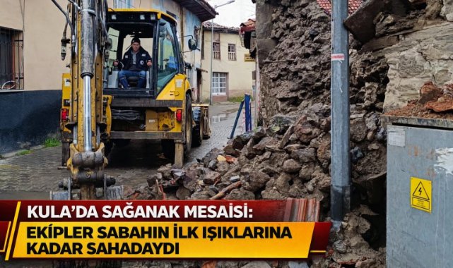 Kula Belediyesi Fen İşleri Müdürlüğü ekipleri, kuvvetli sağanak yağışların ardından ilçe genelinde oluşabilecek olumsuzluklara karşı gece boyunca aralıksız görev yaptı. Çalışmalar, Manisa Büyükşehir Belediyesi ile koordineli şekilde yürütüldü.