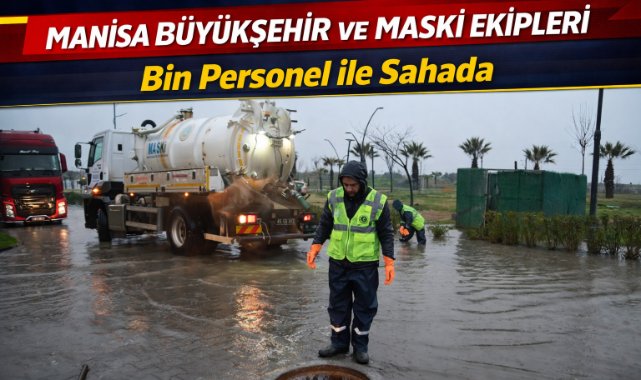 Manisa Büyükşehir Belediyesi ile Manisa Su ve Kanalizasyon İdaresi (MASKİ) Genel Müdürlüğü ekipleri, yağış dolayısıyla tüm ekipleriyle sahaya indi. Ekipler, 1000’in üzerinde personel, 500’ün üzerinde araç ve iş makinesiyle vatandaşların sağanak yağıştan etkilenmemeleri için çalışma yaptı.