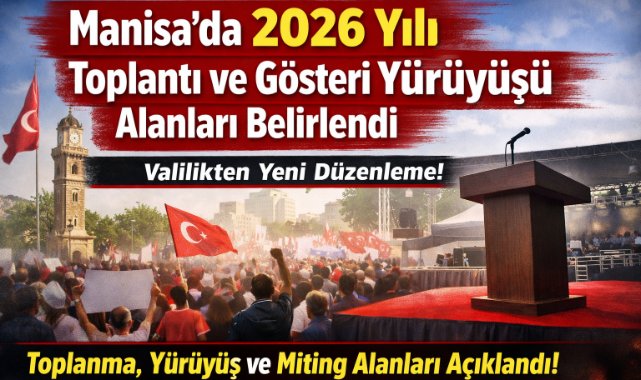Manisa Valiliği, 2026 yılında il genelinde yapılacak toplantı ve gösteri yürüyüşleri için kullanılacak toplanma alanları, yürüyüş güzergâhları, miting alanları ile afiş ve pankart asılacak yerleri açıkladı.