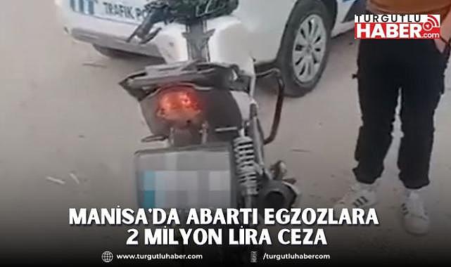 Manisa İl Emniyet Müdürlüğü tarafından il genelinde abartı egzoz kullanımına yönelik yapılan çalışmada, abartı egzoz ve diğer kanun maddelerinden 2 milyon 7 bin 208 lira para cezası uygulandı.