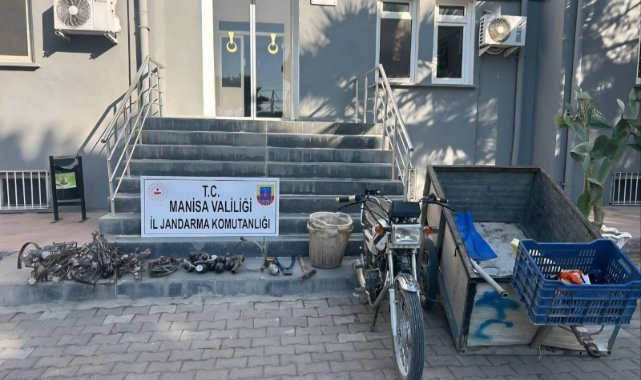 Manisa’nın Saruhanlı ilçesinde elektrik direklerindeki demir ve enerji nakil malzemelerini çaldığı belirlenen 2 kişi jandarma ekiplerince suçüstü yakalandı.