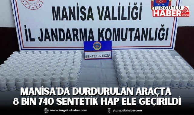 Manisa'da jandarma ekiplerince otoyolda durdurulan bir araçta yapılan aramada 8 bin 740 adet sentetik hap ele geçirildi.