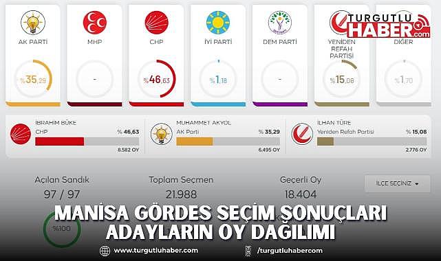 MANİSA GÖRDES SEÇİM SONUÇLARI ADAYLARIN OY DAĞILIMI