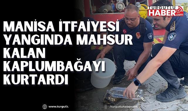 İzmir'de meydana gelen orman yangınına müdahale eden Manisa İtfaiyesi mahsur kalan kaplumbağayı alevlerin arasından kurtardı.