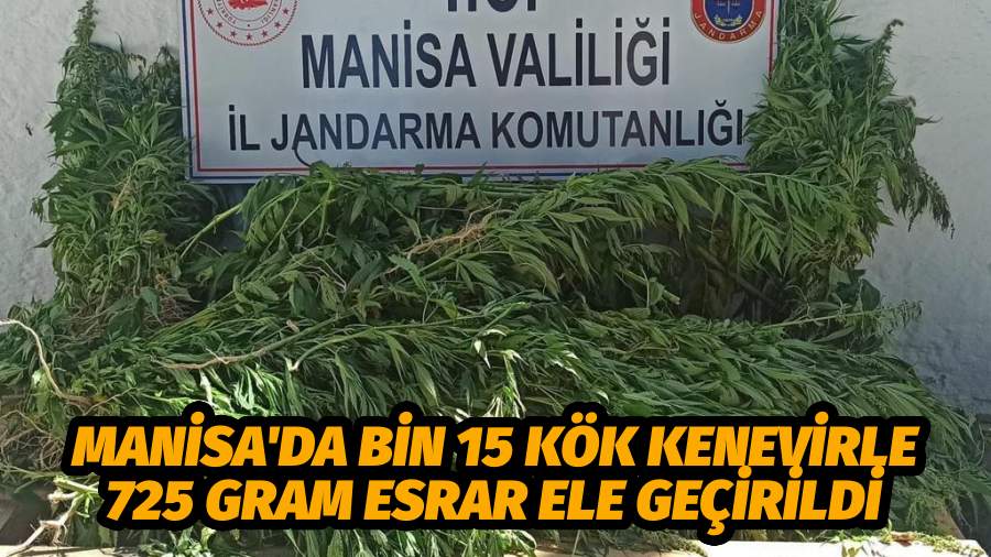 Manisa'nın Şehzadeler ilçesinde jandarmanın yaptığı çalışmada bin 15 kök kenevir ile 725 gram esrar ele geçirildi.
