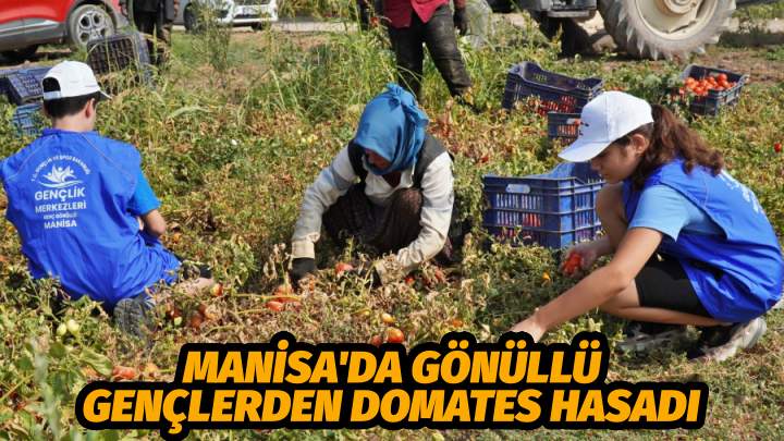 MANİSA'DA GÖNÜLLÜ GENÇLERDEN DOMATES HASADI