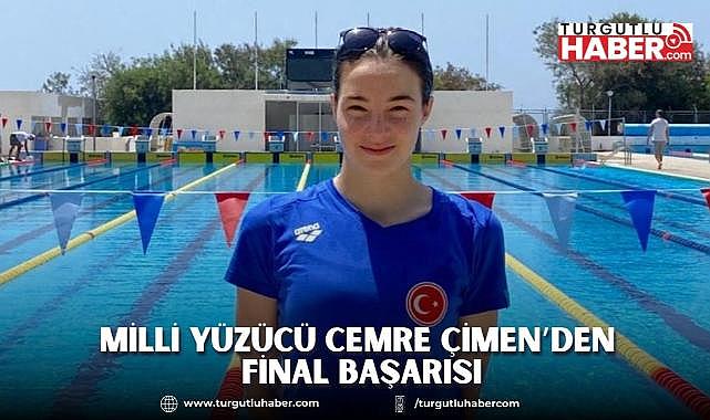 Manisa Büyükşehir Belediyespor Kulübü yüzme takımında görev yapan milli yüzücü Cemre Çimen, Sırbistan’da düzenlenen 2024 Central European Countries Junior Multinations Şampiyonası’nda 50 metre serbest stilde final yüzme başarısı gösterdi. 2024 Central European Countries Junior Multinations Yüzme Şampiyonası, 10-12 Temmuz tarihlerinde Sırbistan’da düzenlendi. Şampiyonada, milli takıma davet edilen Manisa Büyükşehir Belediyespor Kulübü sporcusu Cemre Çimen de yer aldı. Çimen, seçmelerde 50 metre serbest stilde 27.15’lik derecesiyle finale kaldı. Çimen, finalde 27.04’lük derecesiyle 50 metre serbest stilde 7’nci oldu. Manisa BBSK Yüzme Branşı Şube Sorumlusu Barış Ali Çınar da, kulüp antrenörlerini ve Cemre Çimen’i tebrik ederek, milli sporcunun başarılarının artarak devam edeceğine inandıklarını söyledi.