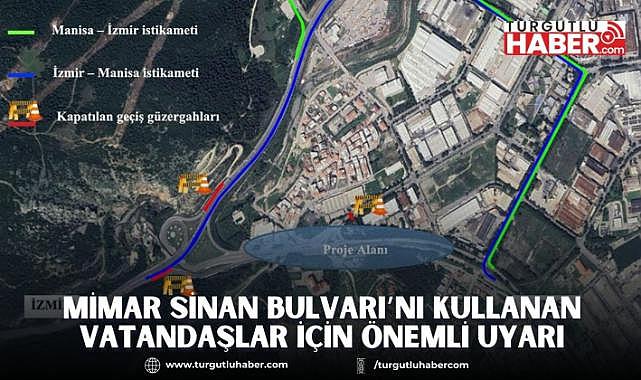 Manisa Büyükşehir Belediyesi, Mimar Sinan Bulvarı Farklı Seviyeli Katlı Kavşak Projesi kapsamında yapılacak imalatlar nedeniyle Mimar Sinan Bulvarı üzerindeki bazı noktaların trafiğe kapatılacağı bildirildi.
