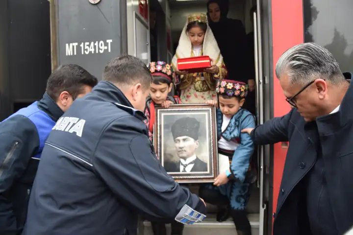 Turgutlu Kaymakamlığı himayesinde düzenlenen ilk tören 09.57’de Turgutlu Tren Garında temsili karşılamayla başladı.