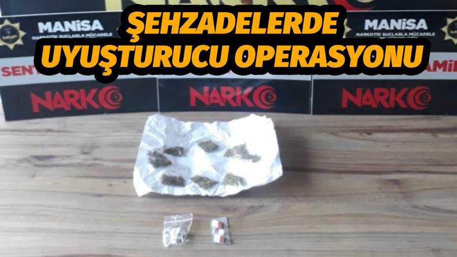 Manisa İl Emniyet Müdürlüğü ve Şehzadeler İlçe Emniyet Müdürlüğü Narkotik Suçlarla Mücadele Grup Amirliği ekiplerince uyuşturucu veya uyarıcı madde ticareti yapan, nakleden ve kullanan şahıslara yönelik çalışma yapıldı.