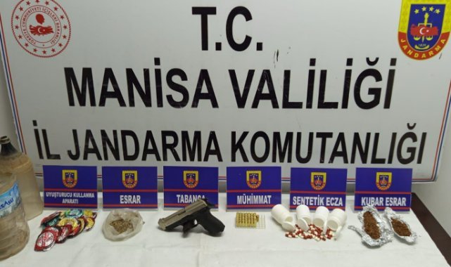 Manisa'nın Soma ilçesinde jandarma ekiplerinin uyuşturucu madde ticaretine yönelik gerçekleştirdiği operasyonlarda, iki ayrı adreste yapılan aramalarda çeşitli miktarda uyuşturucu madde, sentetik ecza ve silah ele geçirildi. Operasyon sonucunda 2 şüpheli hakkında adli işlem başlatıldı.
