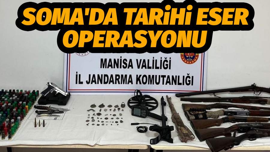 Manisa'nın Soma ilçesinde Jandarma tarafından yapılan tarihi eser operasyonunda çok sayıda tarihi eser ile silah ele geçirildi.