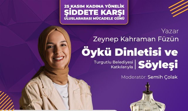 Turgutlu Belediyesi, 25 Kasım Kadına Yönelik Şiddete Karşı Uluslararası Mücadele Günü kapsamında öykü dinletisi ve söyleşi etkinliğine ev sahipliği yapacak. Program, 26 Kasım Çarşamba günü saat 20.00’de Eski Belediye Binası’nda gerçekleştirilecek.