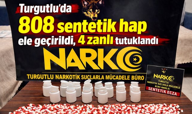 Manisa’nın Turgutlu ilçesi merkezli yürütülen uyuşturucu soruşturması kapsamında düzenlenen operasyonda 808 sentetik ecza ele geçirildi, gözaltına alınan 4 zanlı tutuklandı.