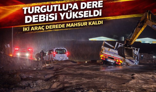 Manisa'nın Turgutlu ilçesinde etkili olan sağanak nedeniyle debisi yükselen Karacaali Deresi'nde mahsur kalan kamyonet ve hafif ticari araç kurtarıldı.