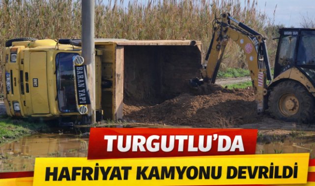 Turgutlu ilçesinde yeni mezarlık arkasında meydana gelen trafik kazasında hafriyat kamyonu devrildi.