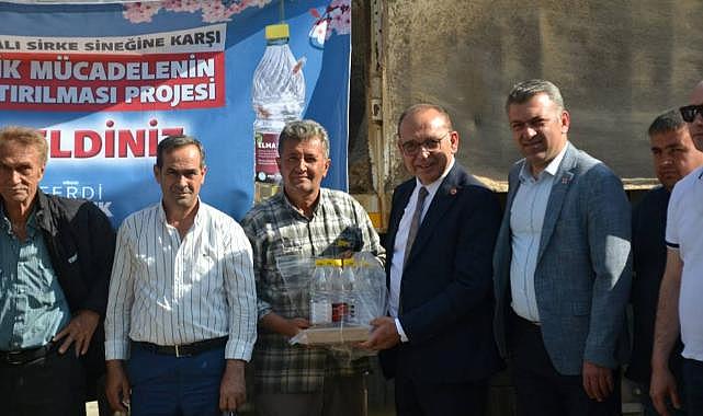 Turgutlu’daki kiraz üreticileri için hazırlanan ‘Kanadı Noktalı Sirke Sineği ile Biyoteknik Mücadele Projesi’ kapsamında Hacıisalar Mahallesinde elma sirkeli pet şişe dağıtım töreni gerçekleştirdi.