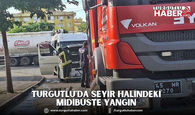 Manisa'nın Turgutlu ilçesinde seyir halindeki midibüste yangın çıktı.