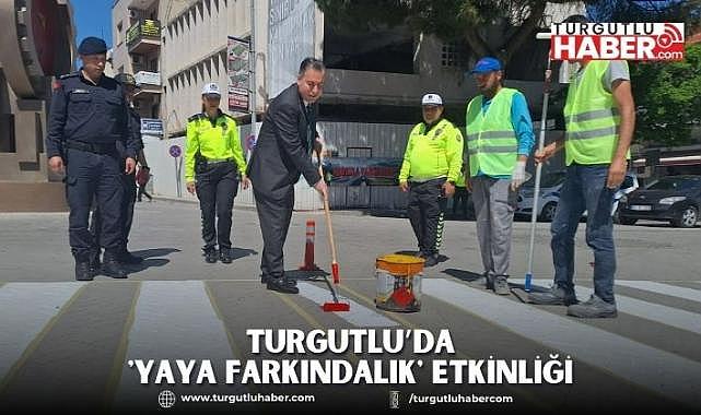 Manisa’nın Turgutlu ilçesinde, trafik haftası etkinlikleri kapsamında yaya yollarında boyama çalışması yapılarak ’Yaya Farkındalık’ uygulaması gerçekleştirildi.