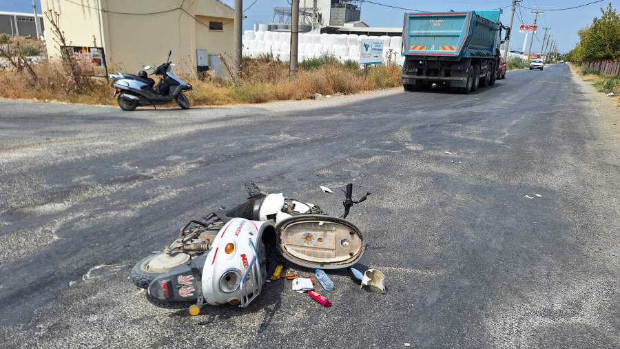 Manisa'nın Turgutlu ilçesinde kamyona çarpan, Suriye uyruklu elektrikli motosiklet sürücüsü yaralandı