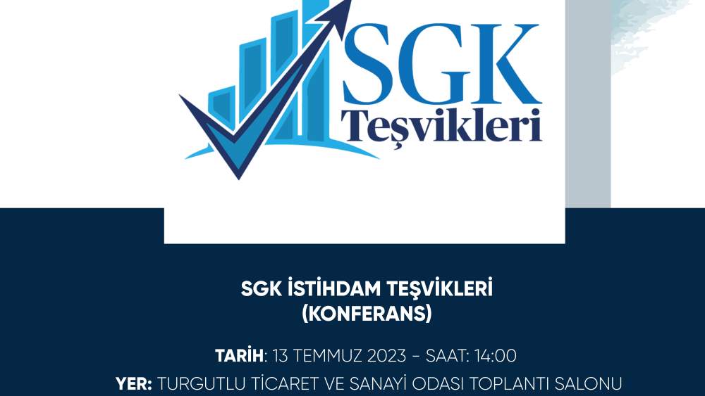 Manisa'nın Turgutlu ilçesinde, SGK Manisa İl Müdürü Buket İnce'nin katılımıyla 'SGK İstihdam Teşvikleri' konusunda konferans verilecek.Konuyla ilgili olarak Turgutlu Ticaret ve Sanayi Odası (TUTSO)'nun web sitesi ve sosyal paylaşım hesapları üzerinden yapılan açıklamada şu bilgilere yer verildi;"13 Temmuz 2023 Perşembe günü, saat : 14.00’de, Turgutlu Ticaret ve Sanayi Odası Toplantı Salonu’nda, Manisa SGK İl Müdürü Buket İnce’nin katılımıyla konferans düzenlenecektir" denildi.