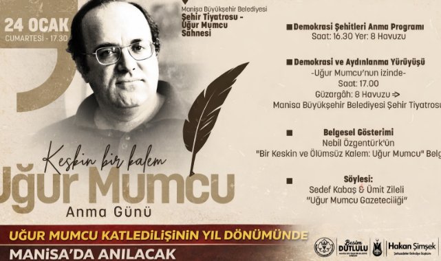Gazeteciliği, kalemi ve aydın duruşuyla Türk basın tarihine damga vuran Uğur Mumcu, Manisa merkezde ve Akhisar ilçesinde gerçekleştirilecek programlarla anılacak. Belgesel gösterimi, söyleşi, yürüyüş ve bağlama dinletisinin yer aldığı etkinlik takvimi kapsamında çeşitli programlar düzenlenecek.