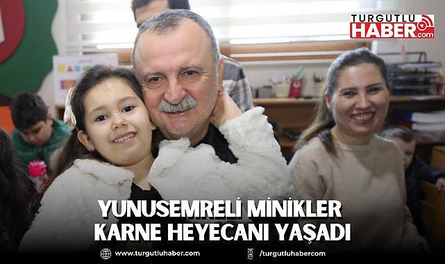 Yunusemre Belediyesi bünyesinde hizmet veren anaokulu ile çocuk kültür ve sanat merkezlerinde eğitim gören minikler karnelerini aldı. Öğrencilerin heyecanına ortak olan Belediye Başkanı Semih Balaban, miniklere karnelerini dağıttı.